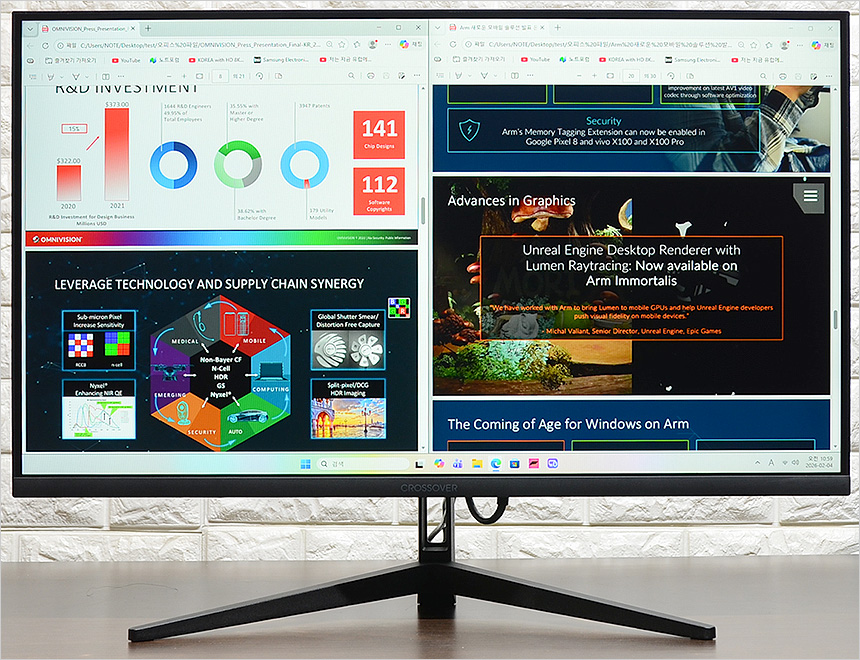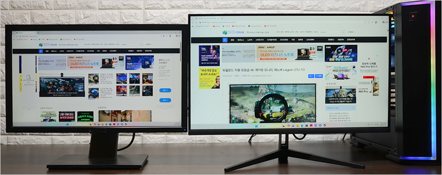 4K 해상도의 동영상을 이용해 멀티미디어 테스트를 진행하고 있는 모습으로 IPS 패널 특유의 밝고 선명한 영상을 즐길 수 있었다. 27형 대화면에 슬림베젤 탑재로 몰입감을 높인 모니터로 만족스럽게 고화질 영상을 즐길 수 있을 것이다.