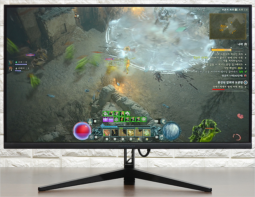 144Hz 주사율을 지원할 뿐만 아니라 응답속도도 1ms로 상당히 빨라 깔끔한 FPS 게임 플레이가 가능했으며 지싱크 호환기술은 물론 높은 밝기를 지원해 배경이 어두운 디아블로 4 등의 게임에서도 확연하게 캐릭터와 배경을 구분할 수 있었을 뿐만 아니라 화면 찢어짐 등의 불편도 없었다. 게임을 즐기는 용도로는 부족함을 느끼지 않을 것이다.