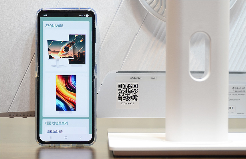 모니터 후면에 부착된 QR코드를 스마트폰 으로 스캔하면 모니터 제조일과 모니터 관련정보를 확인할 수 있는 페이지로 이동할 수 있다.