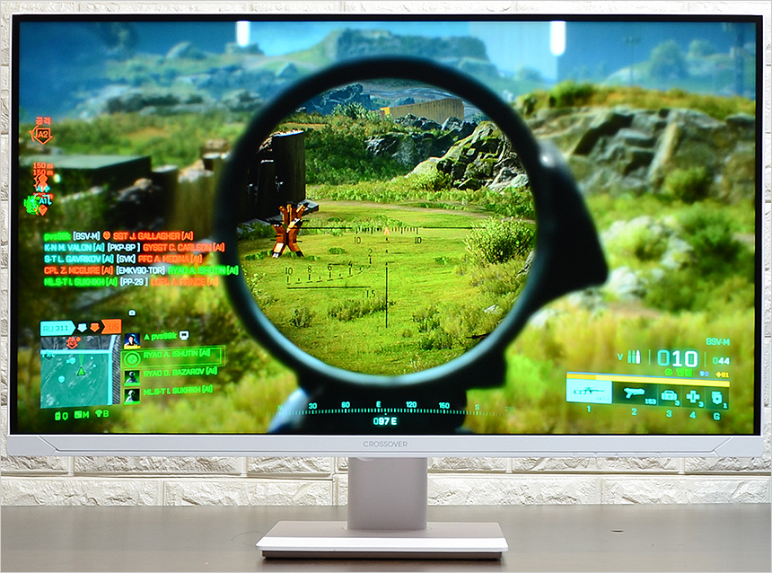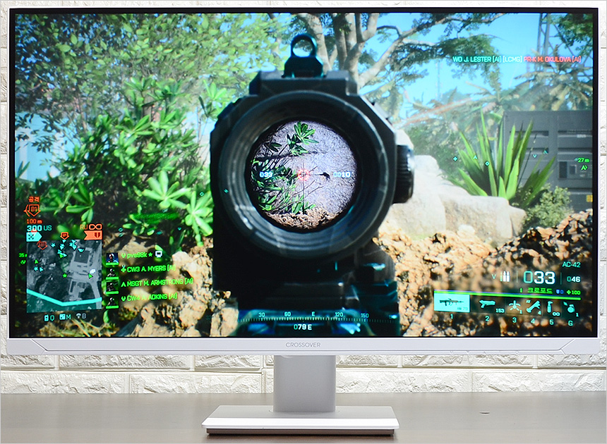 배경에 따라 색이 변해 시인성을 높여주는 Ai 조준선을 지원해 사격 정확성을 높일 수 있었으며 지싱크 어댑티브를 지원해 화면 찢어짐 등으로 인한 불편없이 게임에 몰입할 수 있었다. 뿐만 아니라 다양한 게임 모드를 지원해 사용자의 취향대로 선택해 사용할 수 있었다. (실내나 야간맵의 경우 FPS 모드를 적용하면 시인성을 대폭 개선할 수 있다.)