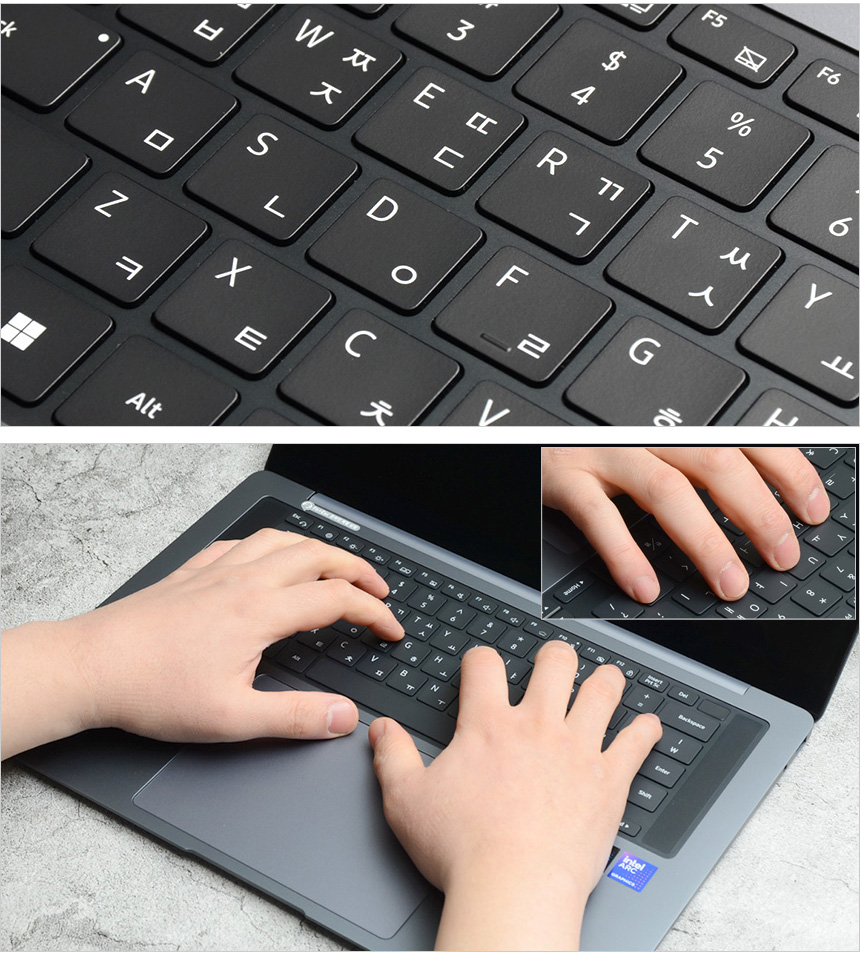 타이핑 테스트를 진행하고 있는 모습으로 구분감이 확연해 눈으로 확인하지 않고도 원할한 타이핑이 가능했으며 키간격이 넓어 오타를 최소화 하고 고속 타이핑을 할 수 있었다. 또한 넓은 팜래스트 지원으로 손 뿐만 아니라 손목까지 안정적으로 받쳐놓은 상태에서 편하게 노트북을 사용할 수 있었다.