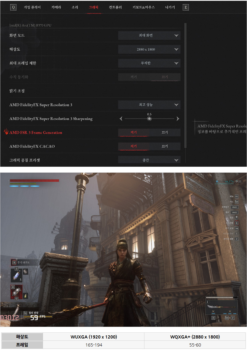 P의 거짓을 중간옵션에서 플레이 하고 있는 모습으로 FSR3 프레임 생성을 활성화 하면 WUXGA 기준 200 프레임 근방까지 올라가는 것을 확인할 수 있었다. 여유롭게 게임을 즐길 수 있을 것이다. (해상도는 WUXGA로 설정하고 FSR3 옵션을 품질이나 높음 정도로 설정해 좋은 화질로 게임을 즐기기 바란다.)
