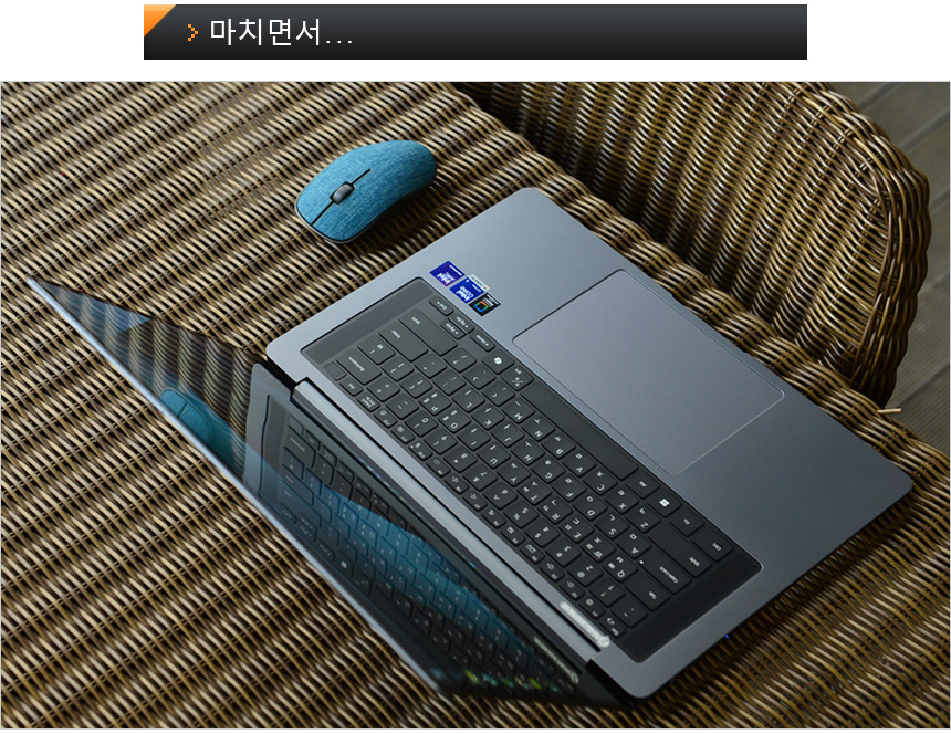 16:10 비율의 16형 대화면 노트북으로 크기가 상당하다. 하지만 3면 슬림베젤 적용으로 크기를 최소화 했을 뿐만 아니라 아주 날렵해 상단에서 언급한 것과 같이 서류가방 등에 편하게 넣고 다닐 수 있다. 특히 동급 최강의 긴 배터리 사용시간을 지원할 뿐만 아니라 PD충전도 가능해 배터리 걱정없이 외부에서 사용할 수 있는 장점을 가지고 있다.