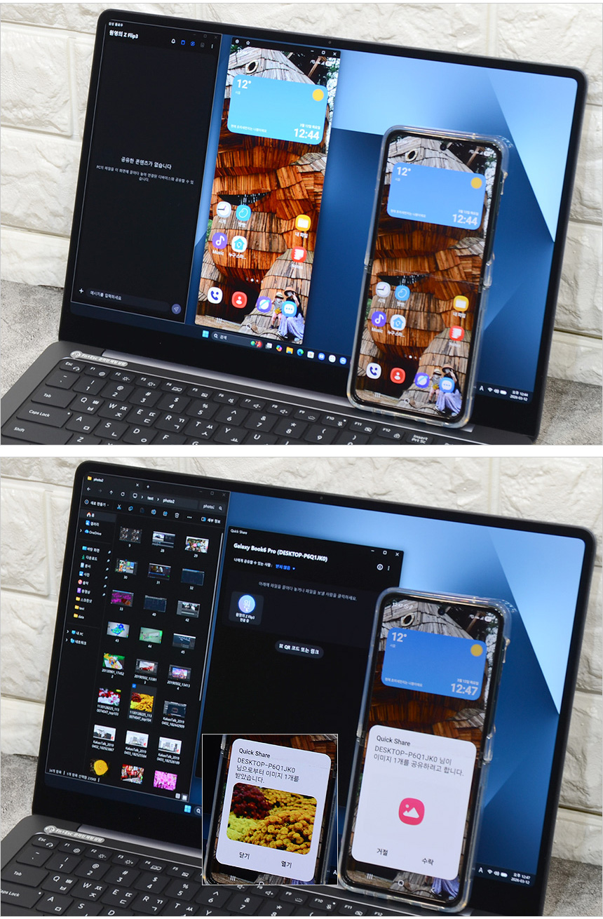 삼성 플로우를 사용하면 노트북에서 스마트폰을 컨트롤 할 수 있으며 무선으로 스마트폰과 간단하게 사진이나 영상, 파일을 전송할 수 있는 Quick Share를 지원해 유용하게 활용할 수 있다. 뿐만 아니라 태블릿과 연결해 화면을 공유할 수 있는 Second Screen을 통해 작업 효율성을 높일 수 있다.