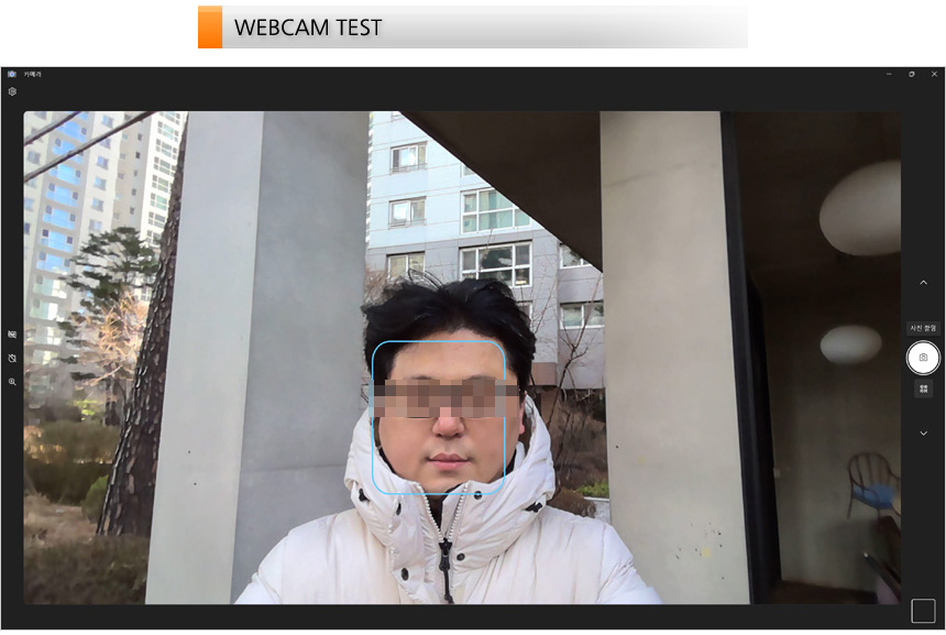 FHD 웹캠의 화질을 테스트 하고 있는 모습으로 HD 웹캠과는 확연히 비교되는 선명한 영상을 보여주었다. 재택근무나 출장 등으로 화상회의가 많은 유저들이라면 불편없이 사용할 수 있을 것이다.