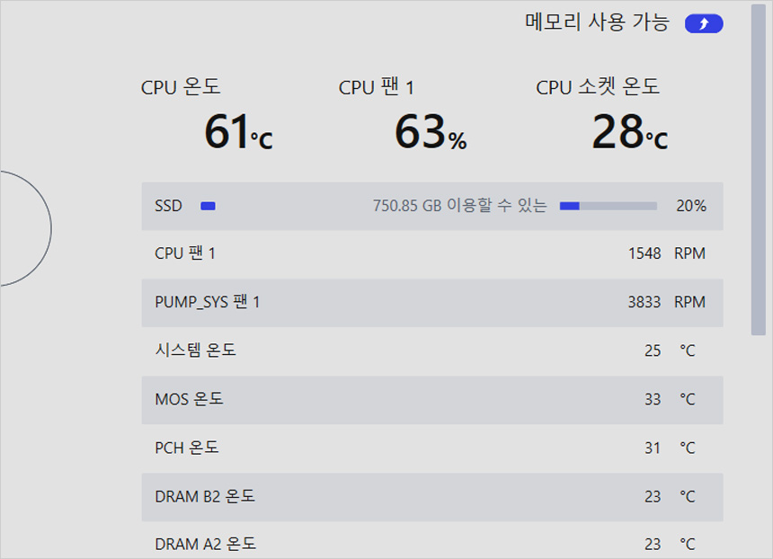상단에서 언급한 것과 같이 메모리 오버클럭 설정이 가능해 기본 메모리를 사용하고 있는 유저들도 손쉽게 메모리 성능을 높일 수 있다.