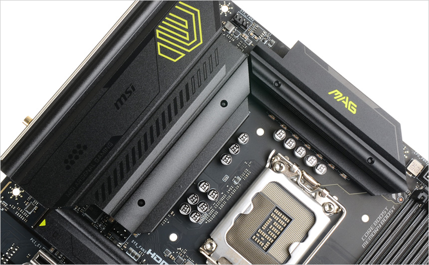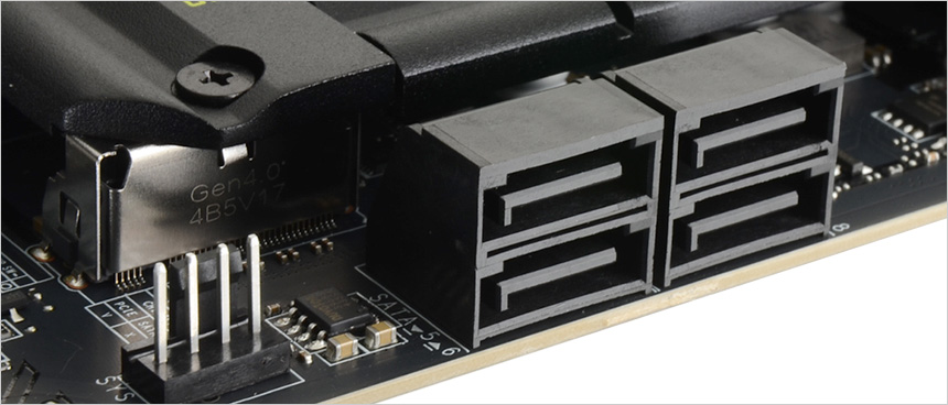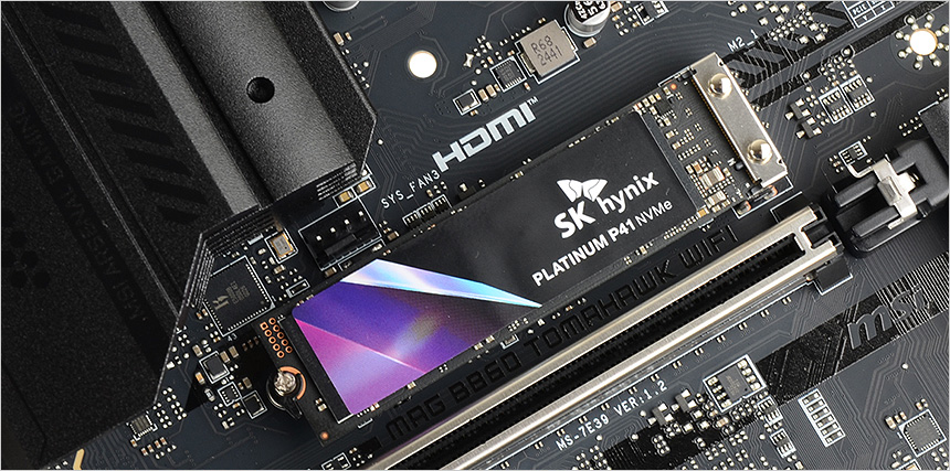 대용량 파일등을 다루는 유저들을 위해 3개의 M.2 슬롯을 지원한다. 메인 M.2 슬롯에는 M.2 쉴드 프로저가 장착되어 (써멀패드도 부착되어 있다.) 고성능 PCIe NVMe SSD의 열을 효과적으로 제어하며 툴리스 방식을 적용해 손쉽게 방열판을 탈부착 할 수 있다. (나머지 두 개 M.2 슬롯을 덮고 있는 쉴드 프로저는 드라이버로 분리해야 한다.)