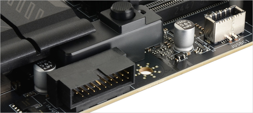 PC 케이스에서 USB 3.2 Gen2 사용을 위한 JUSBC1 커넥터를 제공하며 USB 3.2 Gen1를 위한 JUSB1 커넥터가 설치된 것도 눈에 띈다. 또한 4개의 SATA 단자를 지원해 손쉽게 대용량 HDD를 장착해 사용할 수 있다.