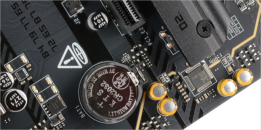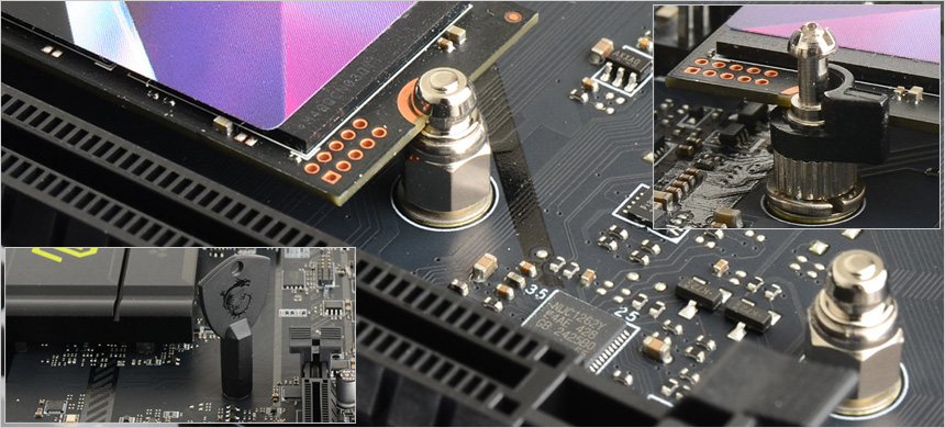 또한 도입부에서 언급한 것과 같이 편하게 그래픽카드를 분리할 수 있도록 EZ PCIe 릴리스 기술이 적용되었다. 힘들게 클립을 누를 필요 없이 사진에 보이는 버튼을 누르는 것만으로 손쉽게 그래픽 카드를 고정시키거나 풀어줄 수 있다.