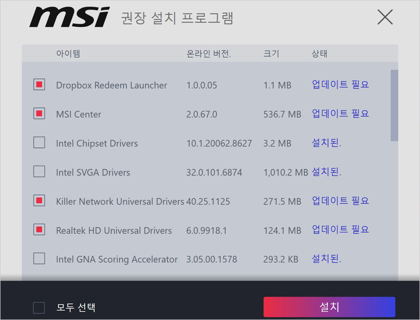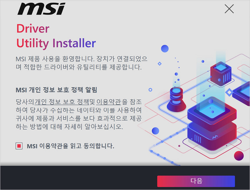 인터넷에 연결되어 있으면 MSI 드라이버 유틸리티 인스톨러가 실행되어 손쉽게 드라이버를 설치할 수 있다. 편하게 PC 셋팅을 완료할 수 있을 것이다.