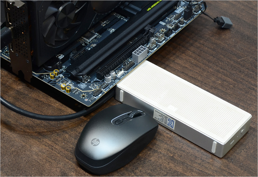 빅타워 PC케이스에 메인보드를 장착해 보았는데 간섭없이 깔끔하게 장착되는 것을 확인할 수 있었다. (일부 미들타워 PC케이스에서는 간섭이 발생할 수 있다.) 또한 M-ATX 규격의 박격포  메인보드와 크기를 비교한 모습으로 세로 길이에서 분명한 차이를 느낄 수 있었다.