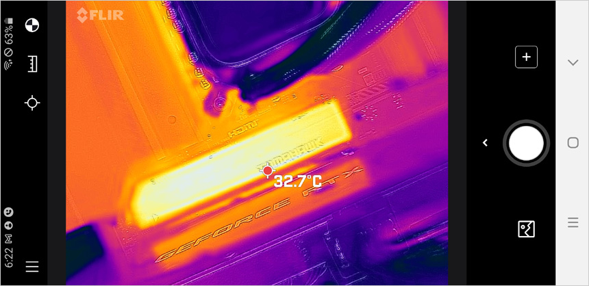 CPU 사용율이 극히 높은 블랜더 랜더링을 실행한 상태에서 전원부를 확인해 보았는데 사진에서 확인할 수 있듯 온도가 상당히 낮은 것을 확인할 수 있었다. 보급형 메인보드와는 안정성에서 분명한 차이를 경험할 수 있을 것이다.