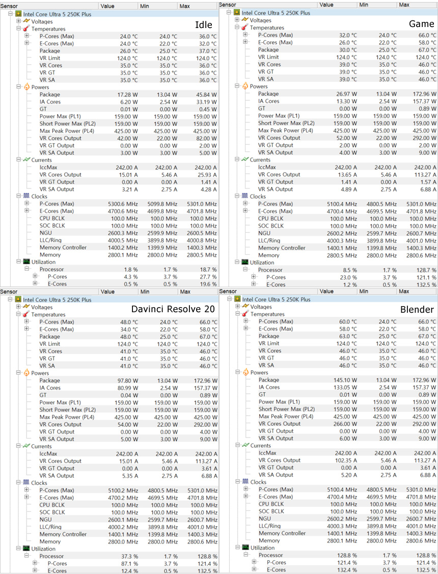 벤치마크 테스트에서 확인한 것과 같이 기본성능에서 확연하게 업그레이드 된 것을 확인할 수 있었다. 일부 스코어의 경우 인텔코어 울트라 7 265K 와 비슷할 만큼 245K 와 격차를 벌인 것이 인상적이었다. 랜더링과 같이 전문작업을 하는 유저들이라면 확실하게 성능이 향상되었음을 체감할 수 있을 것이다.