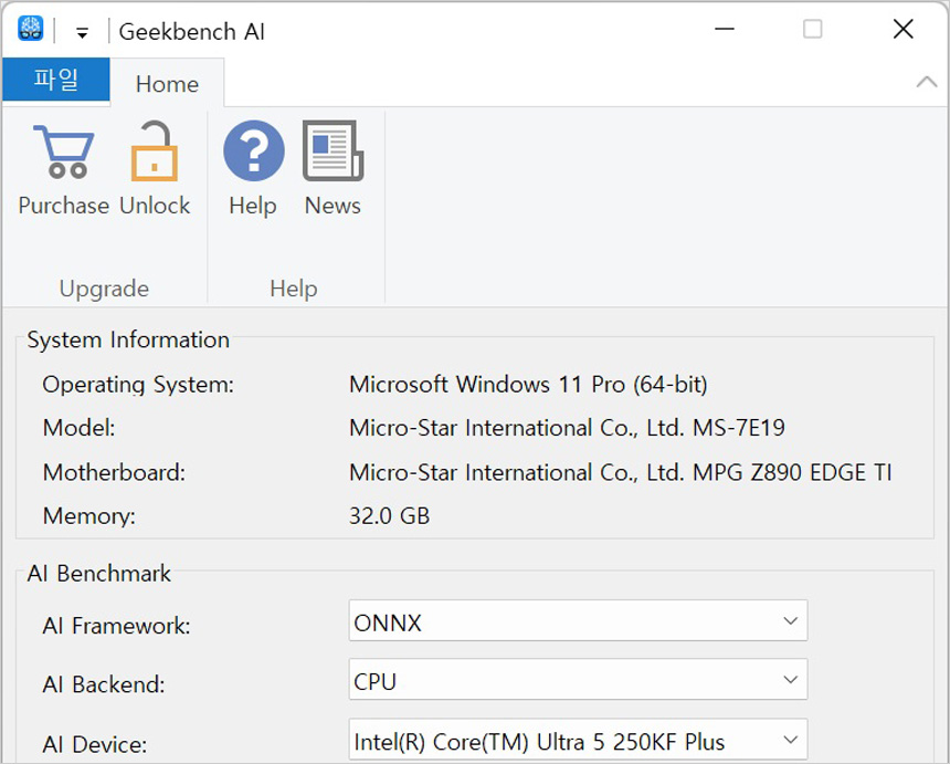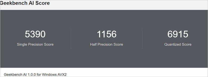 NPU 가 탑재된 AI 프로세서로 긱벤치 AI를 이용해 성능을 테스트 해 보았는데 전작인 245K와 분명한 차이를 보여주었다. 코파일럿은 물론 생성형 AI 프로그램도 부드럽게 실행할 수 있을 것이다.