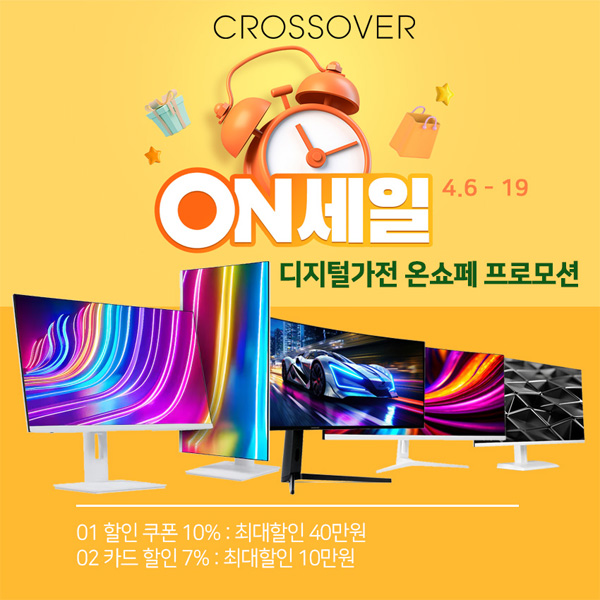 크로스오버는 자사의 인기 모니터 66종을 대상으로 4월 롯데온 디지털가전 온쇼페 프로모션을 진행한다고 밝혔다.