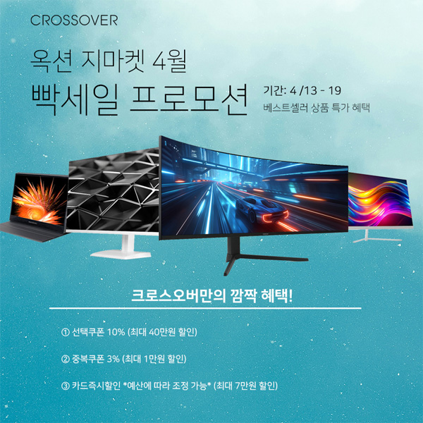 크로스오버는 자사의 인기 게이밍, 고해상도 모니터들을 대상으로 지마켓 옥션 4월 디지털 빡세일 - 브랜드 세일 페스타 프로모션을 실시한다.