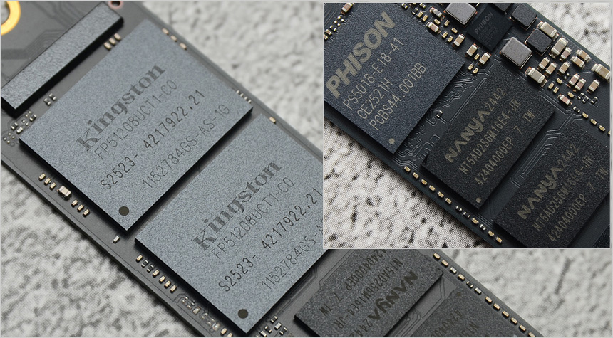 이 제품은 고급형 SSD에서 주로 사용하는 파이슨 PS5018-E18 컨트롤러를 적용했으며 킹스톤 3D TLC 낸드 플래시를 장착했다. 평면 구조의 메모리 공정으로 좁은 셀 간격으로 인해 전자가 누설 되는 등의 현상이 발생하는 2D NAND 탑재 모델들과 달리 전력 소모량을 낮추면서도 수명을 늘린 3D NAND를 탑재해 원활한 데이터 전송이 가능하며 QLC 메모리가 탑재되고 있는 추세인데 이 제품은 TLC 메모리를 사용해 더 높은 성능과 안정성을 경험할 수 있다.