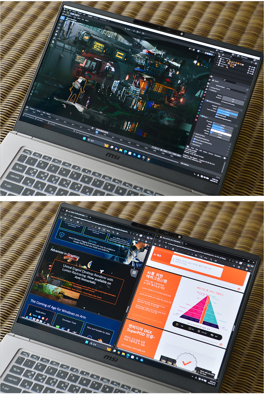 강력한 성능을 지원해 다용도로 노트북을 활용할 수 있는 것은 이 제품의 가장 큰 장점이라 할 수 있다. 인텔 아크 B390를 지원하는 팬서레이크 388H 프로세서를 장착해 고성능을 필요로 하는 작업을 부드럽게 실행할 수 있으며 CPU는 물론 GPU 성능도 중요한 영상편집 랜더링 시간도 상당히 빠른 것을 확인할 수 있었다.