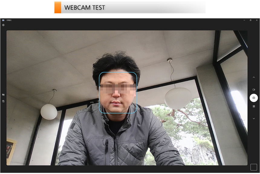 노트북에 장착된 FHD 웹캠의 화질을 확인하고 있는 모습으로 약간 거친 느낌이 있긴 했지만 선명도는 상당히 뛰어난 것을 확인할 수 있었다. 화상회의는 물론 촬영 등의 용도로 유용하게 활용할 수 있을 것이다.
