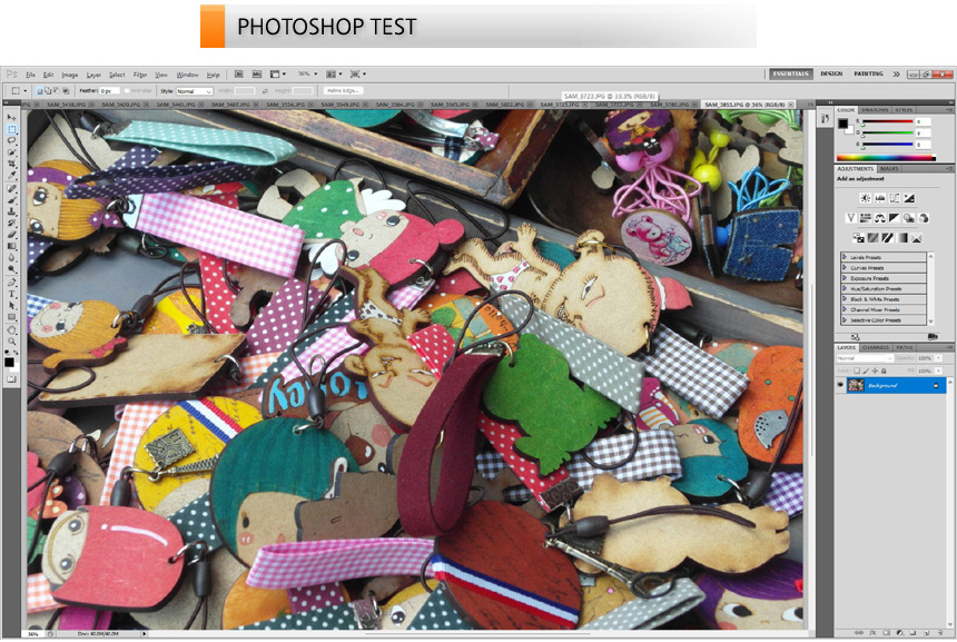포토샵을 이용해 사진편집 테스트를 진행하고 있는 모습으로 고성능 노트북 답게 부드럽게 작업할 수 있었다. DCI-P3 100% 디스플레이가 장착되어 있고 16형 대화면을 지원해 전문적인 디자인 용도로 충분히 활용할 수 있다. @ 총 46장의 원본 사진 (총 180MB) 을 로딩하는데 걸리는 시간을 측정했는데 17초가 소요되었다.